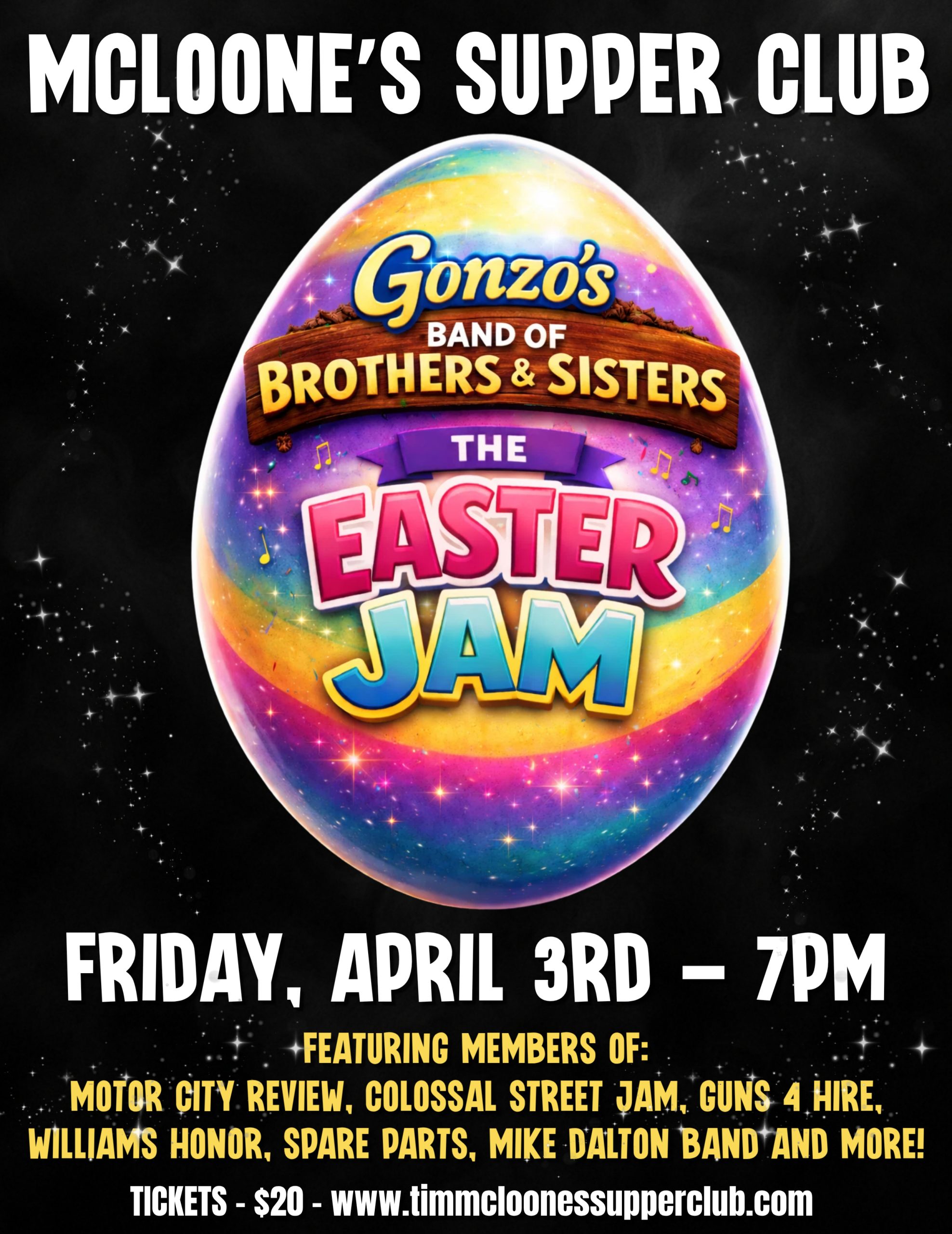 McLoone’s Asbury Park – “Gonzo’s Band of Brothers and Sisters – The Easter Jam” – 7pm (w/ Members of Guns 4 Hire)