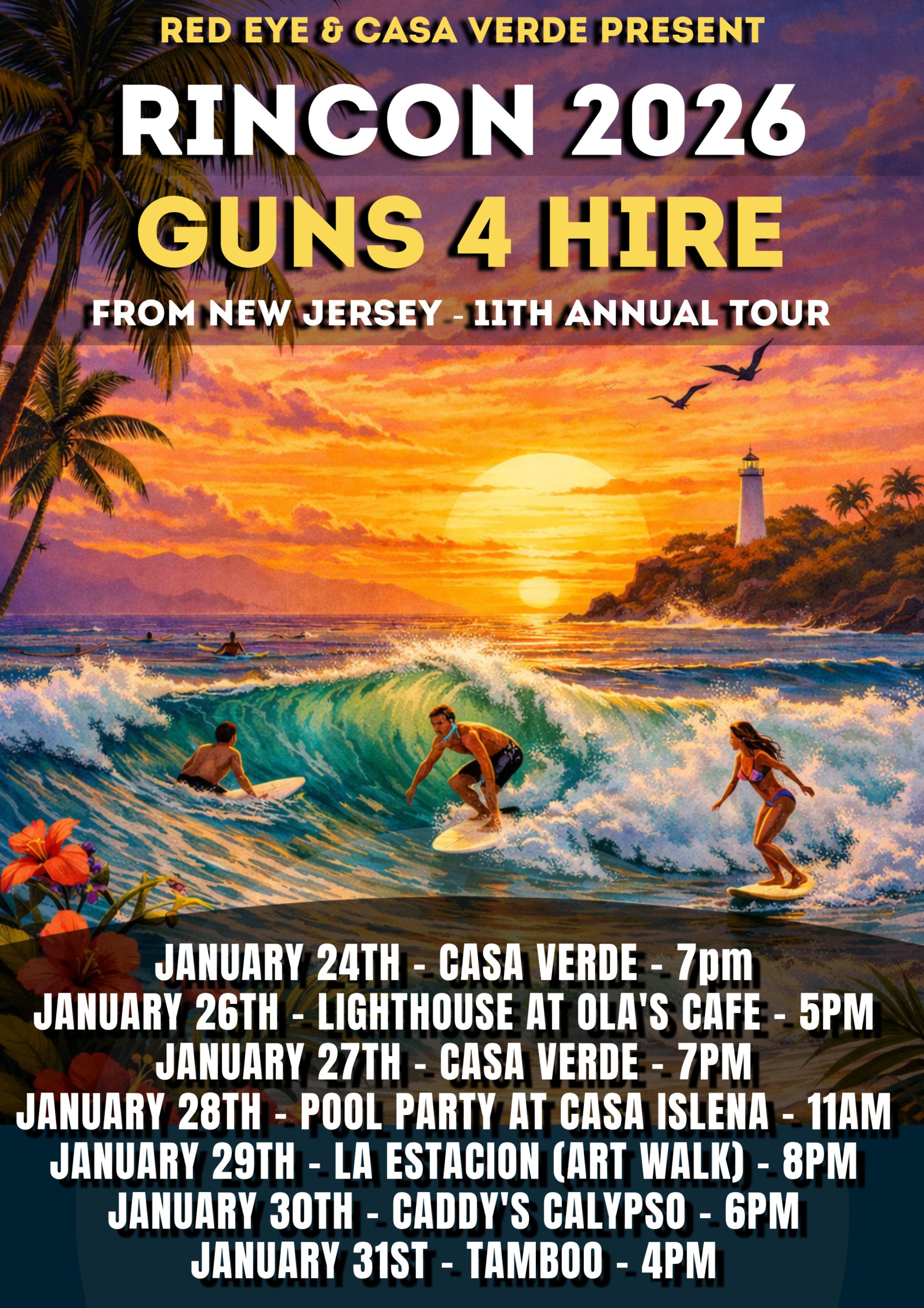 Here is our schedule for Rincon 2026, January 23rd thru February 1st!7 shows over 8 days in paradise!